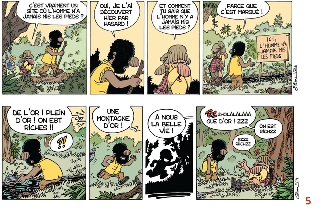 Brad Rock, un chercheur d'or avec sa famille, sur une île du Pacific vers 1864. Livre de comic strips, format A5 à l'italienne. Cette série est également publiée dans le journal de Spirou.